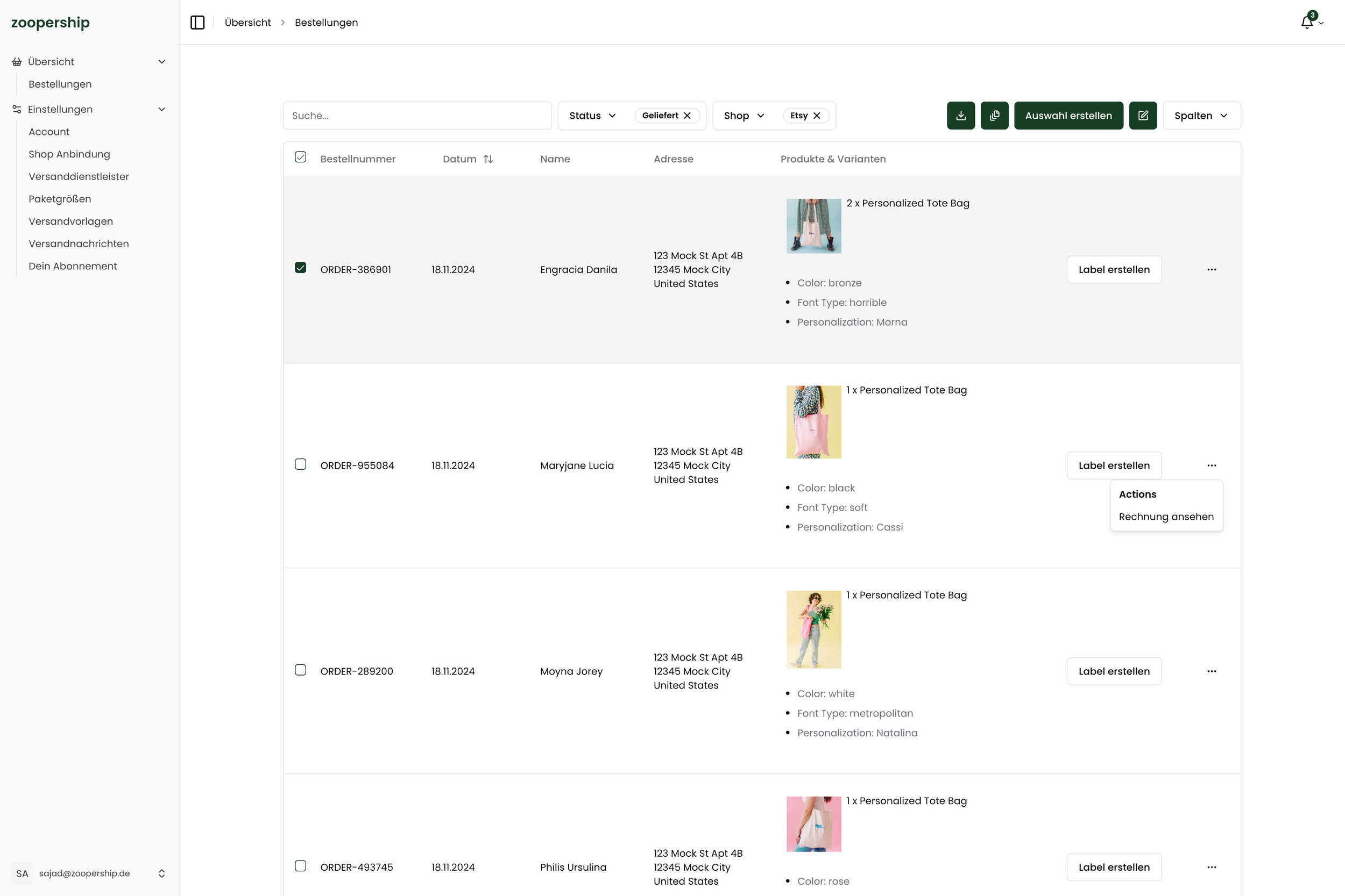 Mit zoopership automatisierst du die Erstellung von Versandetiketten für deine Shops. Egal ob Etsy, Woocommerce oder Shopify.